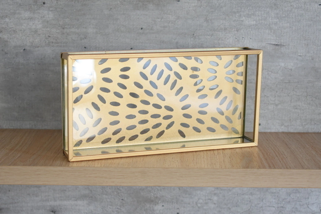 Bandeja de vidrio con fondo dorado