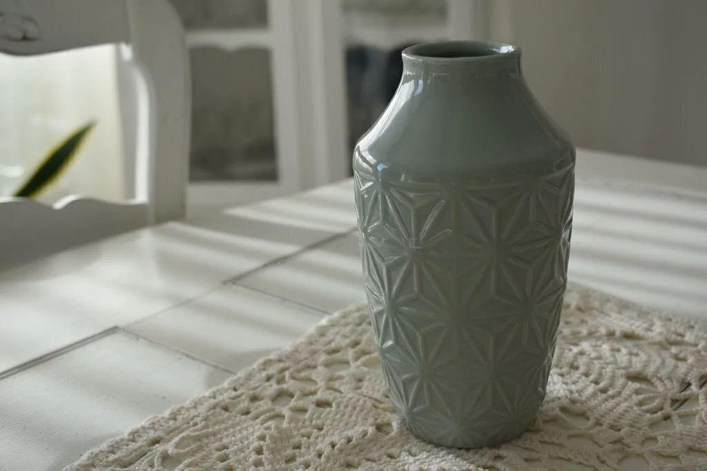Jarron Ceramica Grande Con Dibujo De Estrellas Color Celeste
