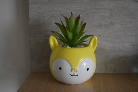 Maceta conejo color amarillo. Incluye vegetal artificial